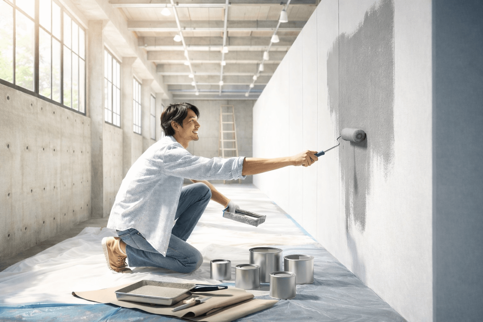 コンクリートの壁や天井、床などをDIY塗装する際の手順と方法を解説していきます。