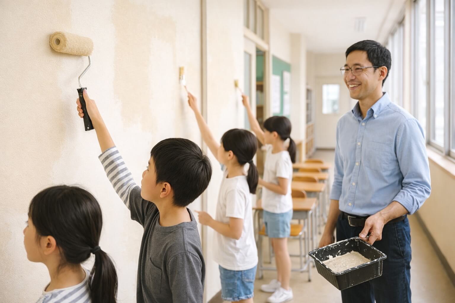 学校や保育施設によっては、先生と生徒・園児が協力してDIY塗装する取り組みを行うところもあると思います。