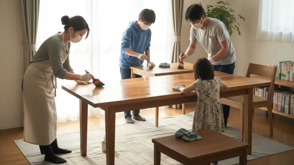 自然塗料はペンキに比べて耐久性が低いため、メンテナンス頻度が高くなります。オイル系もワックス系も耐久性に大差はなく、1年に1〜2回の塗り直しが必要とされています。また、表面に塗膜がない分傷が付きやすく、水拭きができないものが多いです。