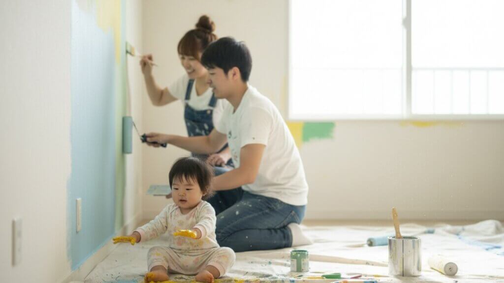 赤ちゃんが舐めても大丈夫なように、家庭でのDIYには水性塗料やオーガニックペイントを選ぶのがおすすめです。塗料の管理には十分注意を払ってくださいね!