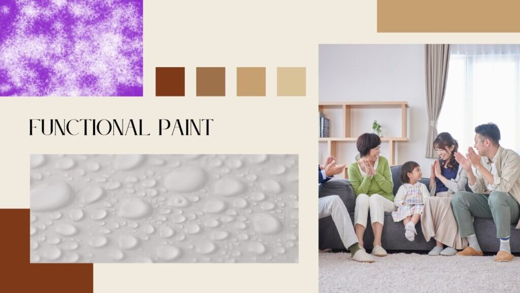抗菌機能を持つ塗料には、光触媒や銀イオンなどの抗菌剤が用いられています。防カビ機能を持つ塗料には、ヒノキチオールやチモール、d-リモネンなどの防カビ剤が含まれています。