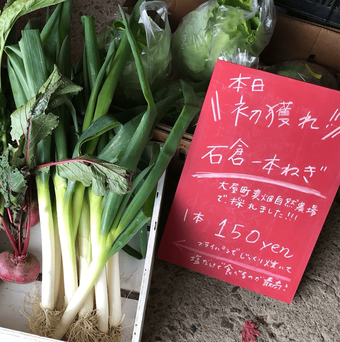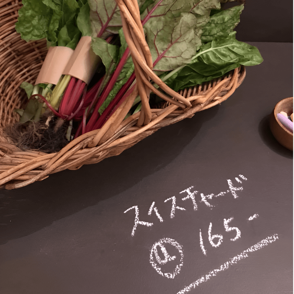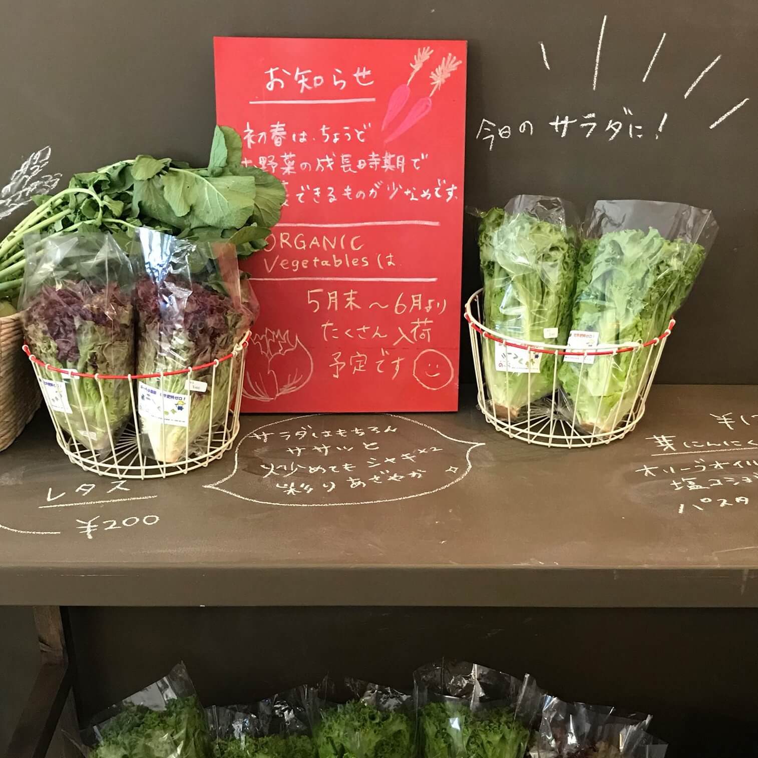 濃い色なので、チョークも映えて見やすく、商品である有機野菜もきれいに見えます。