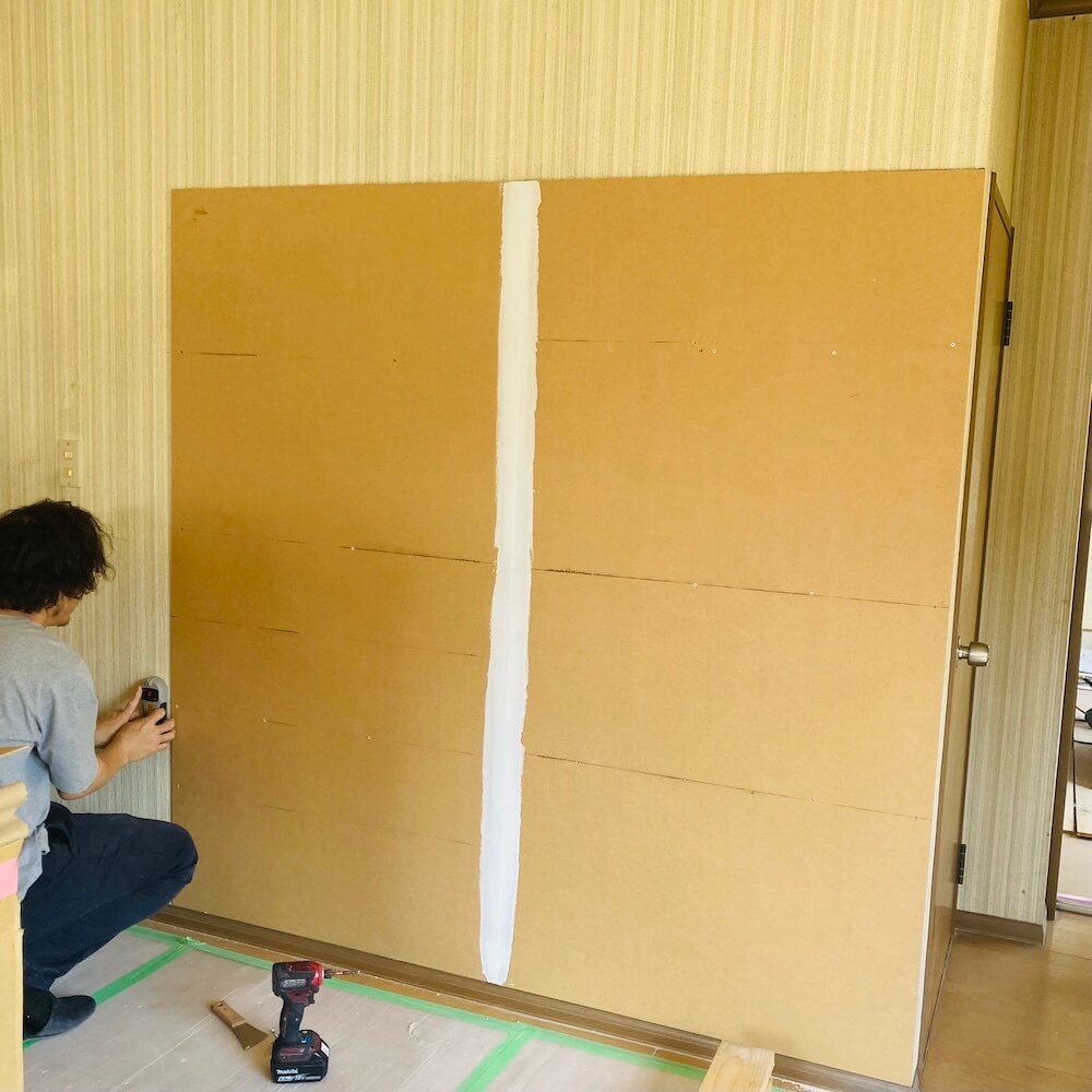チョークボードの土台はプロの方に手伝って頂きMDF板を使い壁打ちで造作しました。