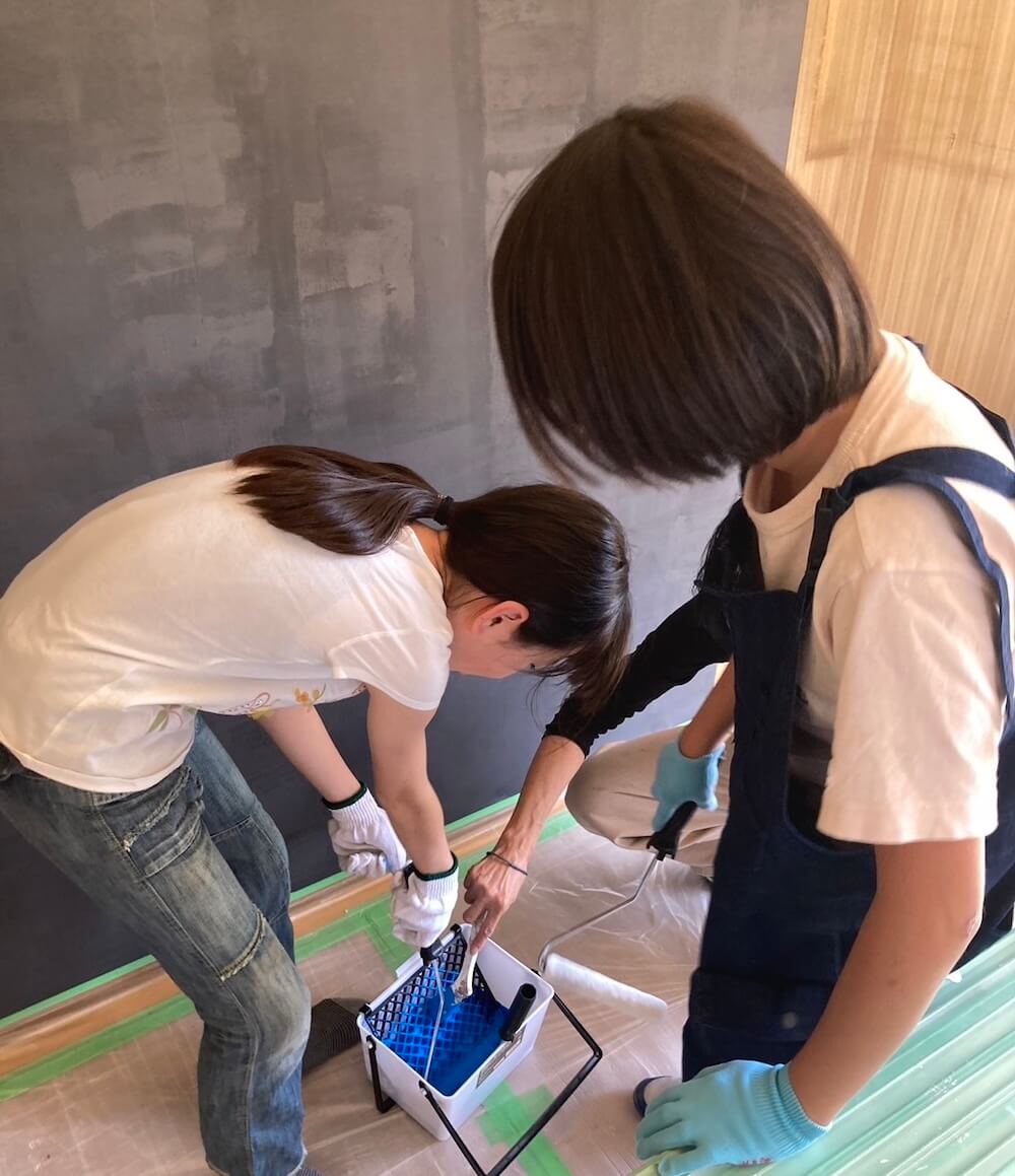 高い場所は脚立に乗って全身を使いローラーを上に下に転がしていきます。職人さんになった気分でテンションも上がりっぱなしですね(笑)