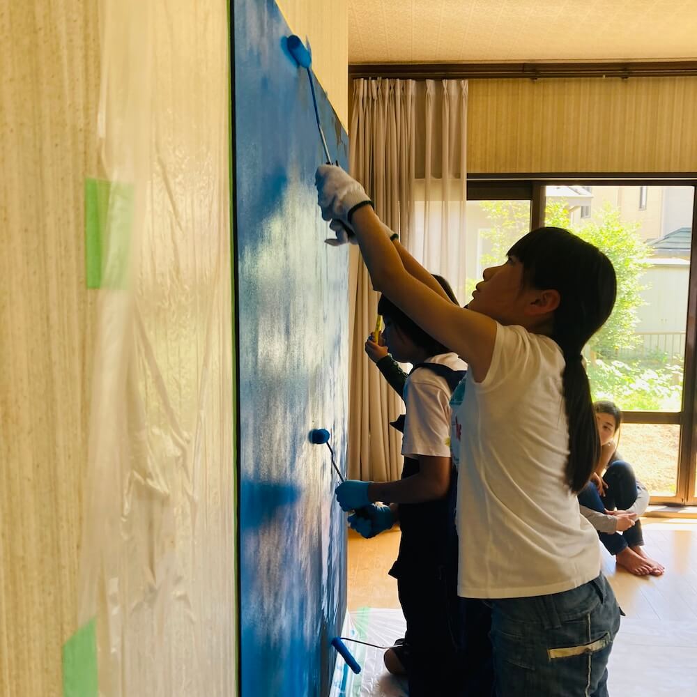 ローラーで壁を思いっきり塗る。という経験をした事がない子ども達。大興奮!!
