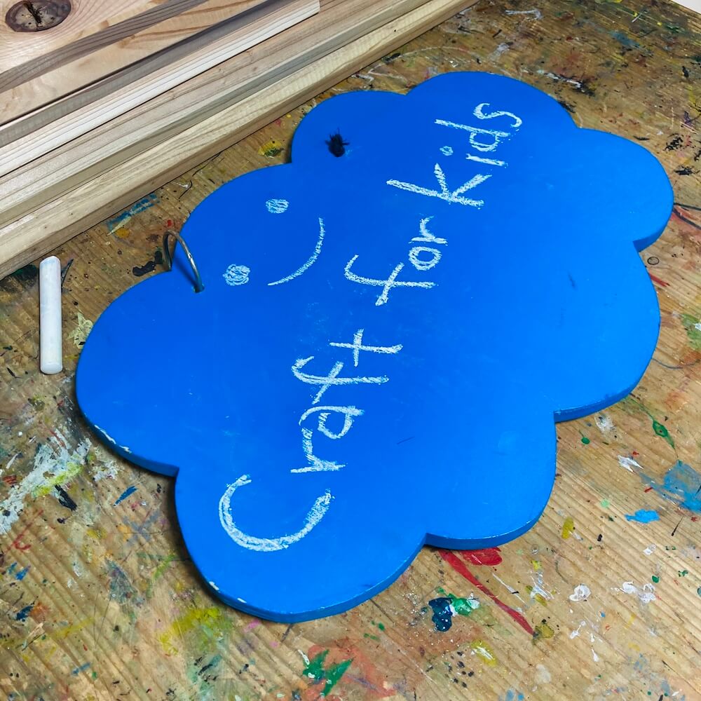 それを教室のシンボルの雲型の板にペイントして普段外部の工作ワークショップなんかで使わせて頂いていました。